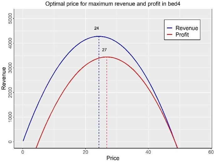 Determined optimal prices that maximize revenue and profit for several retail products using generalized linear models in R