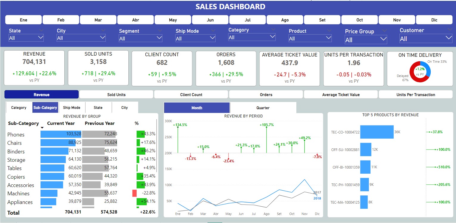 Developed a Power BI dashboard to identify trends, problems and growth opportunities regarding sales
